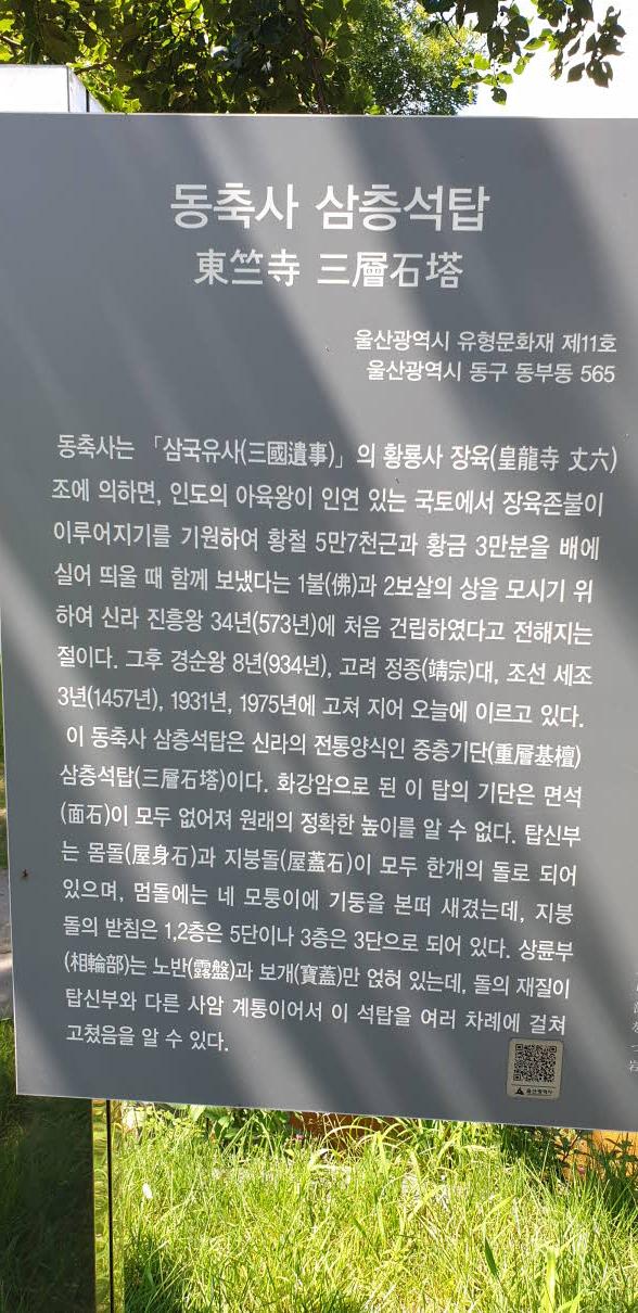 울산에 위치한 신라시대에 제작된 동축사 삼층석탑이다.
