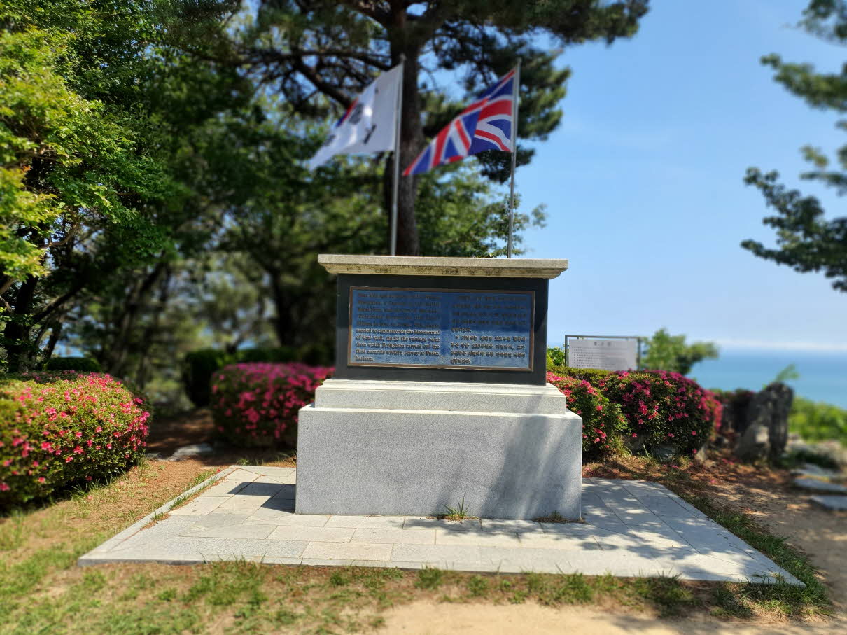 한영국기가 나란히 게양되어 있고, 영문과 한글로 새겨진 비가 있다.
