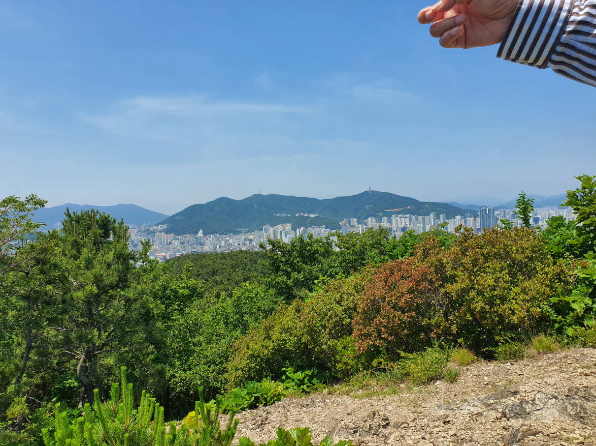 추모공원에서 내려가면서 좌를 보니 황령산과 금련산이 시야에 들어 온다.