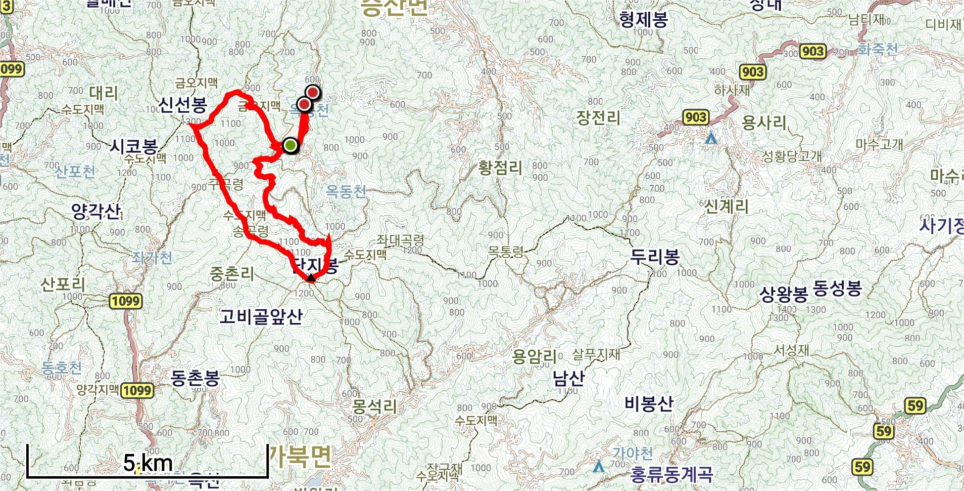 거리가 더 짧다면 둘만 가도 괜찮겠지만, 단지봉 코스도 12km 정도로 계산되었다.